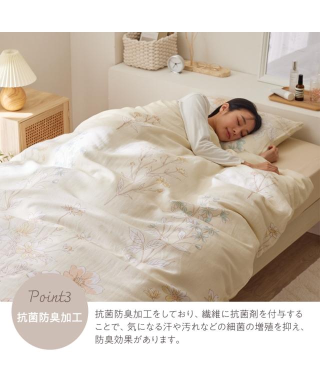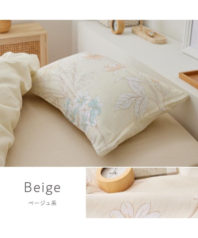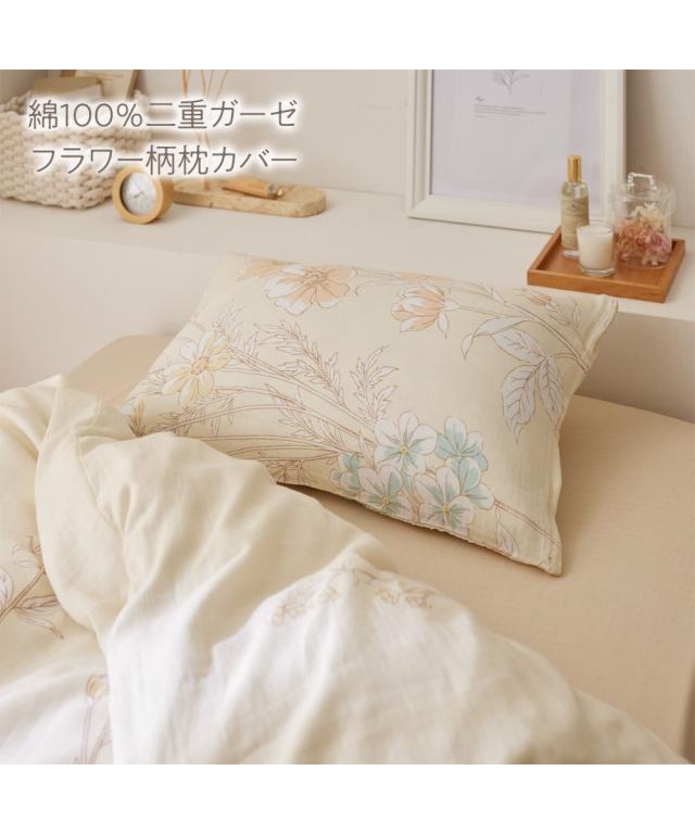 枕カバー 綿100% 二重ガーゼ 枕 カバー フラワー柄 抗菌防臭 加工 ピローカバー 寝具 43×63cm用 ニッセン nissen