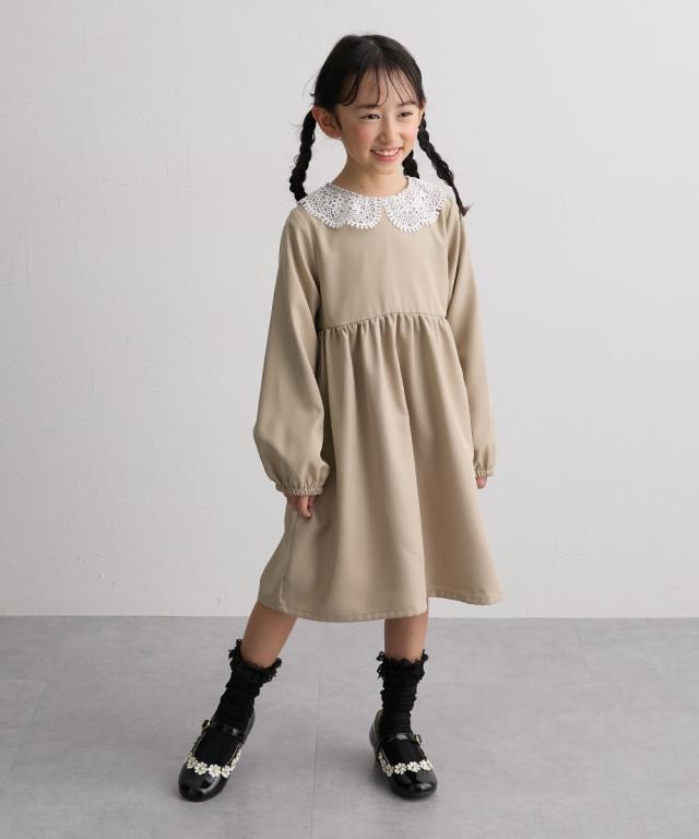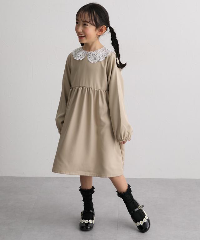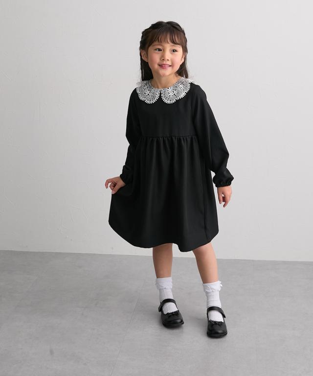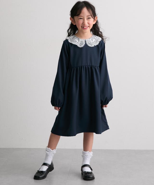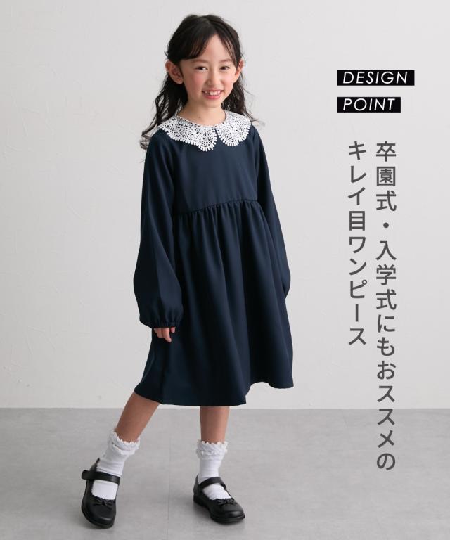 卒園式や入学式、冠婚葬祭におすすめ! レース衿付き長袖ワンピース ■デザイン ・シンプルな無地&レース衿付ワンピースがスマート ・ウエスト部分の切替えがカワイイ&上品さをプラス ・しっかりした生地感で、シルエットもばっちり決まる■素材 ・少し光沢のあるしっかりとした上質な素材