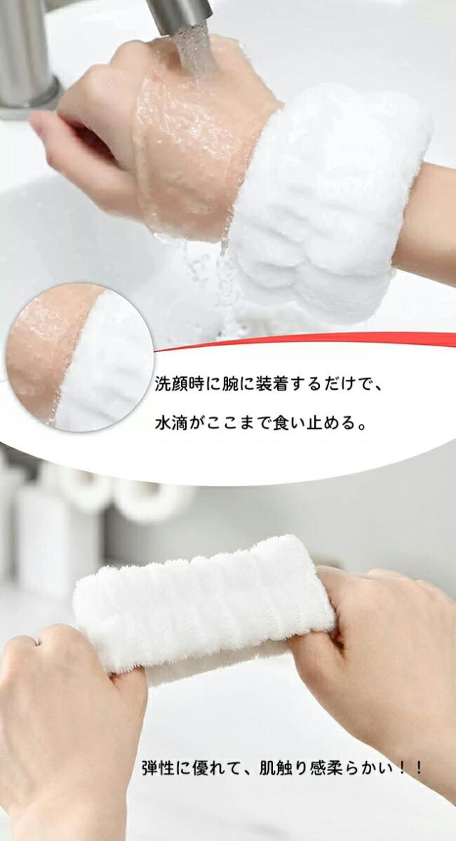 洗顔用 水濡れ防止バンド リストバンド かわいい 吸水 速乾 洗顔 風呂で快適に使える 洗顔 腕ひじ