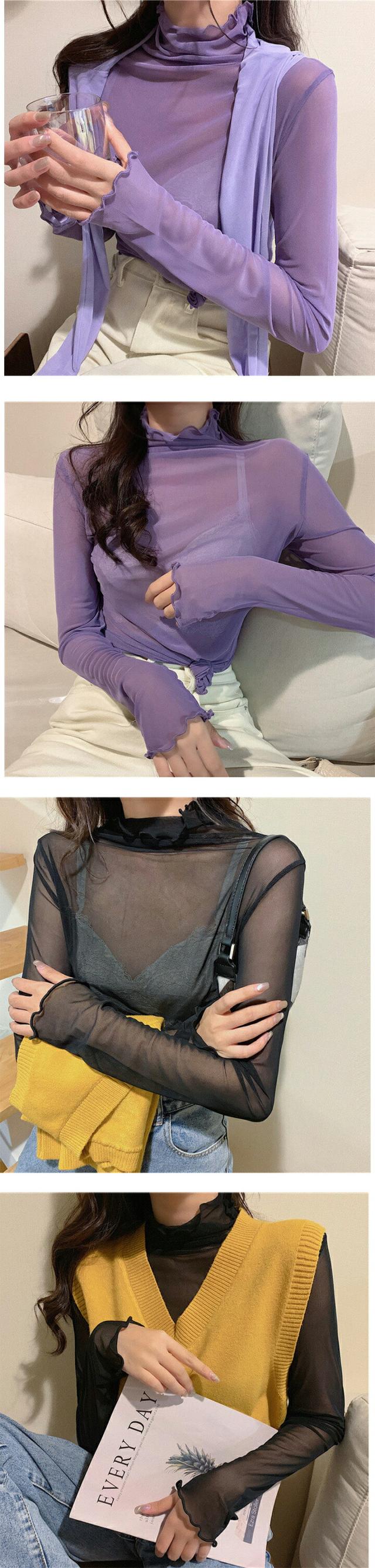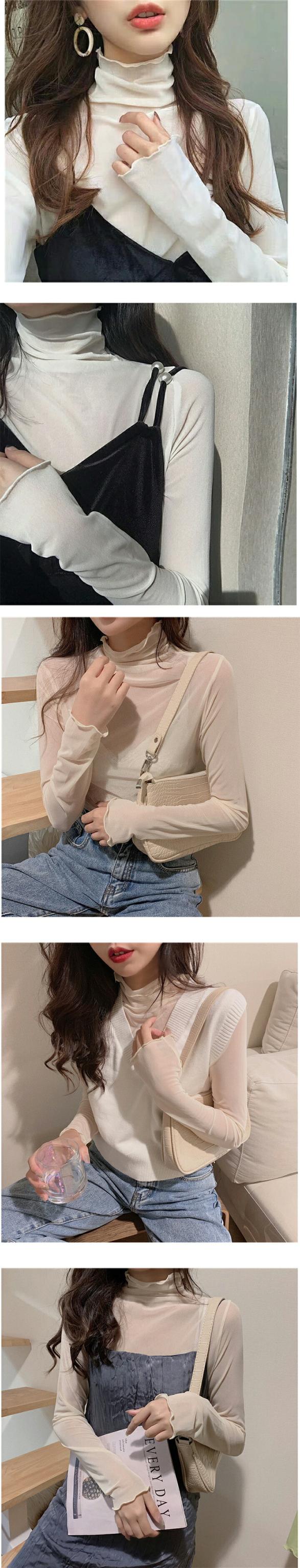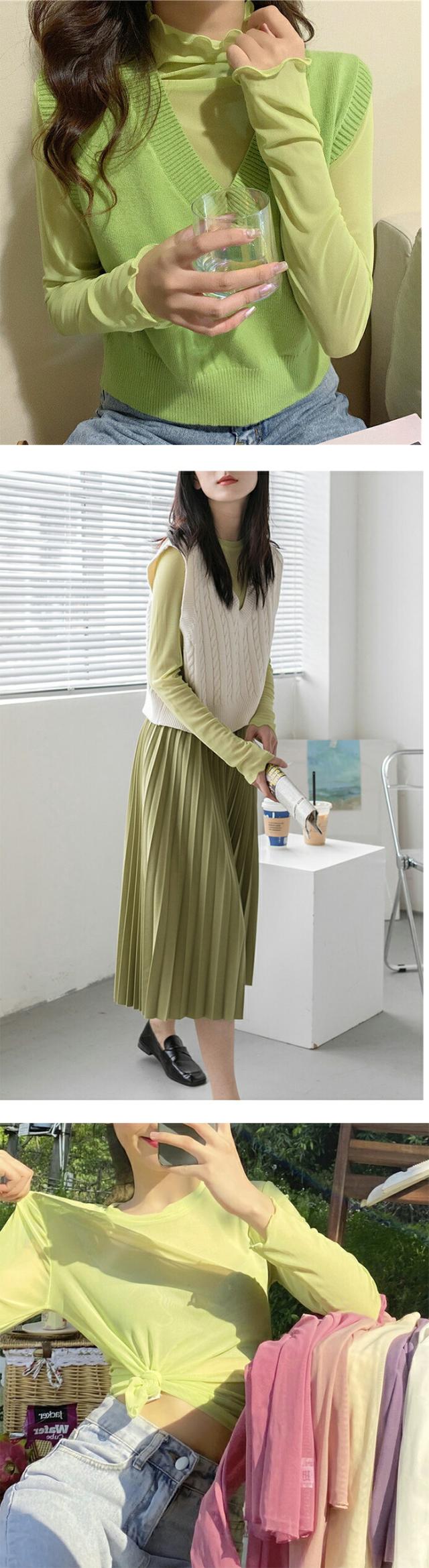 シアーカットソー 春 シャツ シースルー 3タイプ ハイネック トップス インナー シースルートップスカットソー 長袖 クルーネック ハイネック 透け感 薄手 トップス 大人可愛い 重ね着
