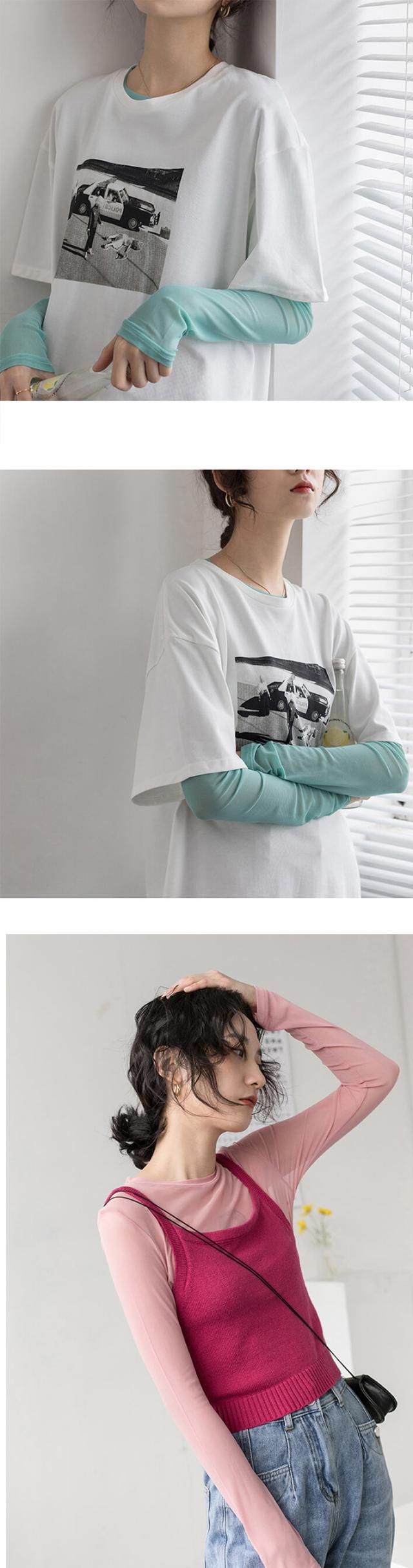 ☆五分袖新入荷!首もとをおしゃれに隠せる レイヤードスタイルに欠かせないシアーハイネック!