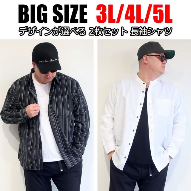 【2枚セット】メンズ 大きいサイズ シャツ ブランド Louis Chavlon ルイシャブロン ストライプ 無地 長袖 3L 4L 5L アンサンブル 長袖シャツ 清涼感 ビジネス 春 夏 秋 カジュアル アメカジ キレイめ 大人 30代 40代 50代 モノトーン ビジネス リモートワーク 在宅勤務