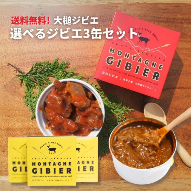 選べる3缶セット ジビエ缶 岩手 三陸 送料無料 シチュー キーマカレー 鹿肉 肉 ヘルシー 低脂肪 低カロリー 高タンパク 筋トレ food