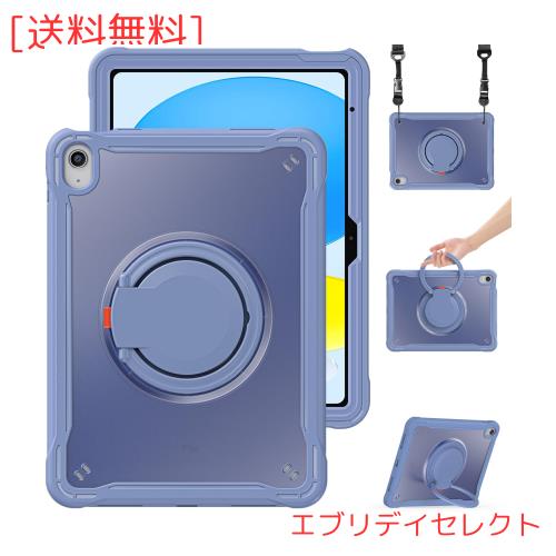 縦置き 横置き iPad 10 ケース 肩掛け 360°回転持ち手 ペン収納 iPad第10世代 2022 カバー ショルダーストラップ付き ハードPC +シリコ