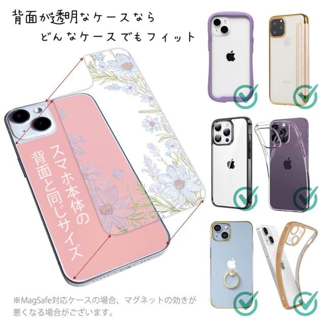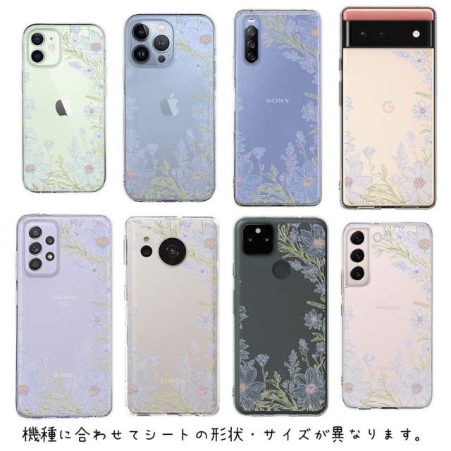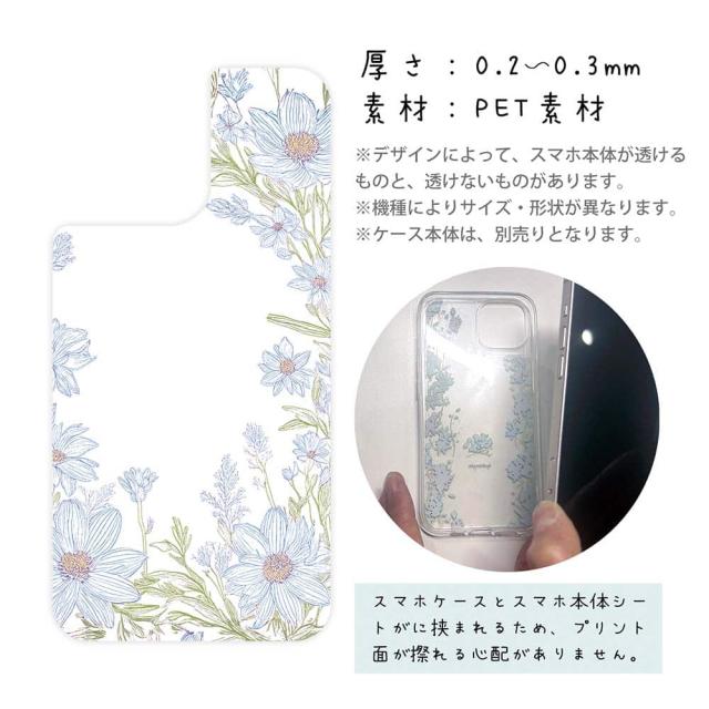 スマホケース iPhone Google Pixel Xperia Galaxy AQUOS arrows 着せ替え シート インナーシート スマホカバー 背面 透明 クリア オリジナル デザイン 花 花柄 No Name Flower Blue