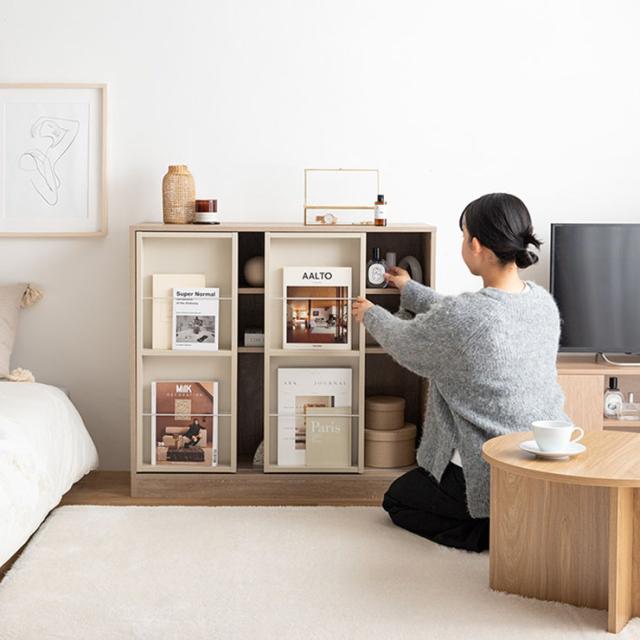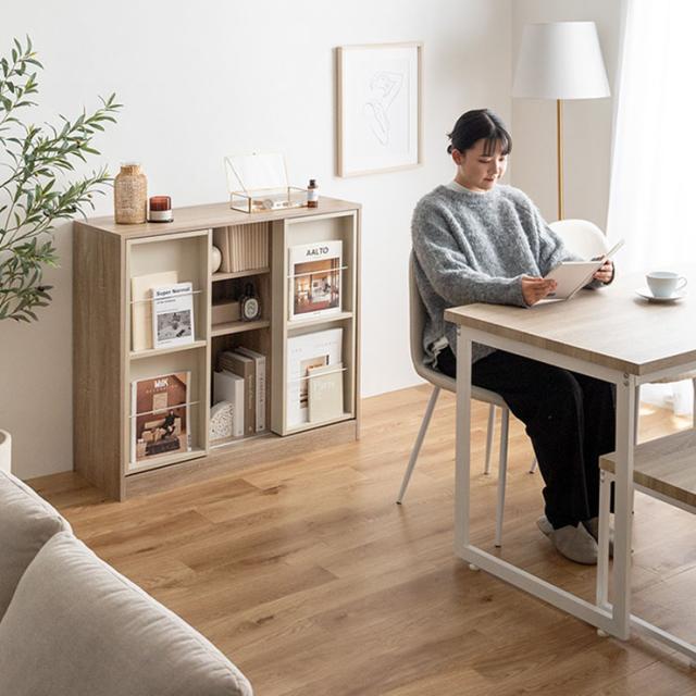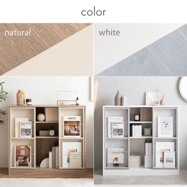 本棚 コミック収納 幅96cm スライド収納付き Mysa(ミーサ) 2色対応 ブックシェルフ 書棚 コミックラック おしゃれ 大容量 チェスト サイドボード シンプル 木製 スリム ディスプレイ 収納棚 リビング