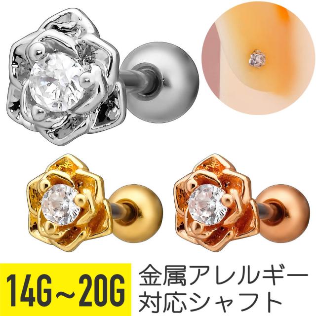ミニ ローズ ジュエル ストレートバーベル 14G 16G 18G 20G サージカルステンレス ジルコニア ヘリックス 軟骨ピアス ボディピアス