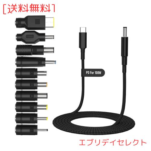 【ノートパソコン 充電ケーブル セット品】ノートパソコンに付属するACアダプターの代わりに、USB Type-C(USB-C)ポート搭載のAC充電器からパソコン本体の充電ポートへ充電できるの変換ケーブルです。USB CオスからDC端子(外径5.5mm/内径2.1mm)仕様で、Type-C ポートを備えたPD対応充電器からラップトップの DC ジャックまでに接続してから充電できます。 また、丸端子対応の10個パソコン用変換プラグが付属しており、様々様々なノートパソコンに対応可能です。複数PCデバイスがあるとプラグ変換だけで充電可能です!!【ご注意】Type C to DCケーブルは最大20V/5Aの負荷電流に対応しています。