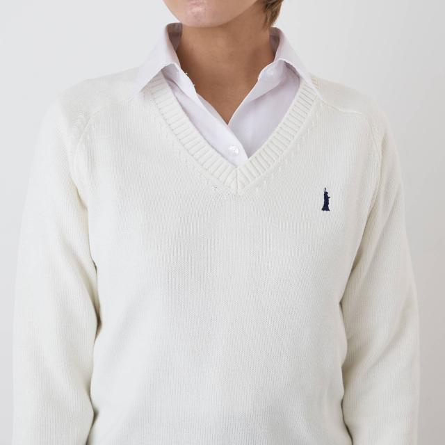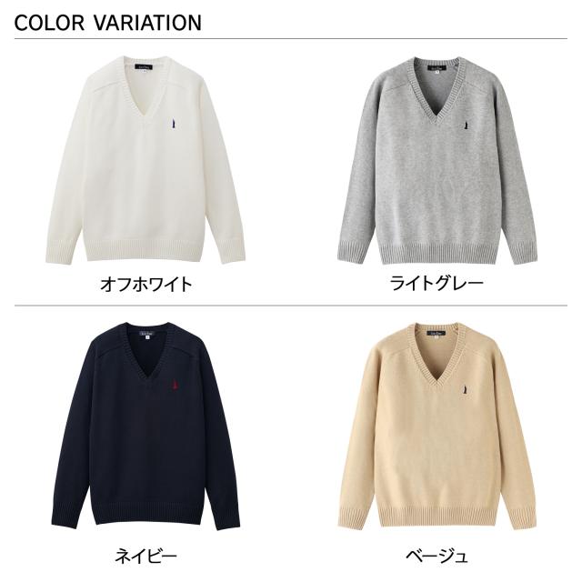 EASTBOYの定番アイテムであるVネックセーター。左胸にワンポイントでロゴが入ります。洗濯機で洗うこともでき、アクリル混紡なので型崩れしにくく、EASTBOY独自の仕様で、型のほつれを防ぐために、通常より長めに糸始末をしており、リンキング糸にポリエステル糸を1本入れて、強度が上がっています。袖口リブと裾リブ端のリンキング部分には、ほつれを防ぐ為にミシンで縫いを入れています。ポケットのほつれを防ぐ為、通常より長めに糸始末をしています。しっかりとした作りなので長く使うことができます。学校や普段使い、入学祝などのプレゼントにもぴったりなアイテムです。