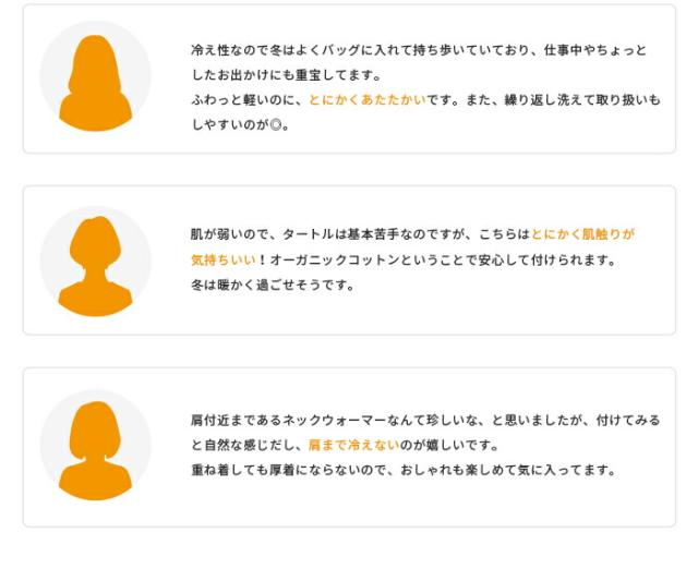 首まわりをしっかり覆ってくれるから、冷え性でお悩みの女性にもおすすめ。出先やオフィスなどの冷房対策、就寝時の冷え対策に活躍します。