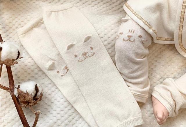 犬と猫の表情が可愛い、オーガニックコットン100%のレッグウォーマー。