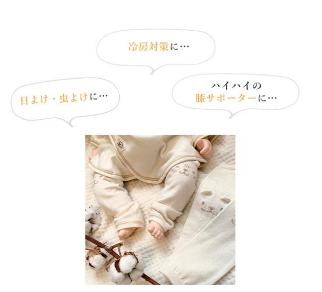 お出かけの際の防寒、夏の冷房対策、ハイハイを始めたときの膝サポーターなど…