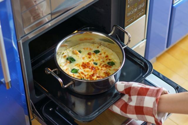 今まで様々な調理道具が必要だったケーキ作りが、ジオ・プロダクトたった一つで手軽に楽しめます。またお鍋ごとオーブンの中に入れる料理も得意です。