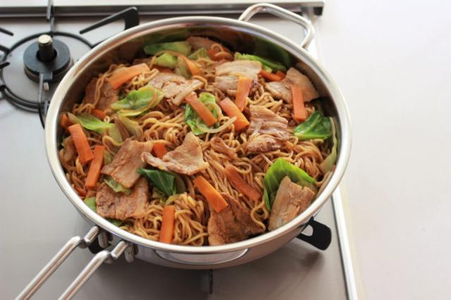 素材の油分を上手に活かして焼く“無油調理”ができます。例えば焼きそばなどは、肉から出る油と野菜の水分を利用して調理できます。