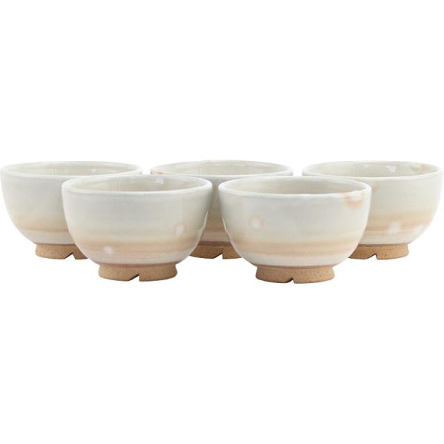 ◆機能・特徴:1日本製「御本手」と呼ばれる還元焼成により淡いピンクや,オレンジの斑点が特徴。土ものらしい柔和で温かみのある汲出しの5客揃です。長年使い込むと、表面の貫入からお茶やお酒が浸透して器表面の色調が変化し、侘びた雰囲気を醸していきます。これを「萩の七化け」と言い、萩焼の特徴的な魅力となっています。「器を育てる」とも言いますが、一つの器を使い続ける楽しさと、それを使い続けていくことで、自分好みの器になっていく過程をお楽しみください。