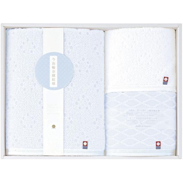 今治輪奈織紋様 22744-03740-308 バスタオル&ウォッシュタオル2P ギフト 内祝い 贈り物 贈与品 プレゼント お返し あられ&つなぎ (代引不可) (のし包装無料対応可)