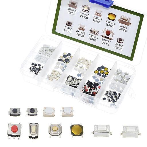 【パッケージ内容】10種類のタクトスイッチ各25個、計250個、収納ケース付き。