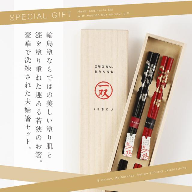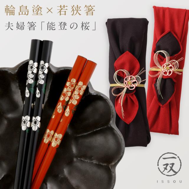 箸 輪島塗 若狭箸 結婚祝い ペア プレゼント 一双 issou イシダ 日本製 高級 夫婦箸 お箸 ギフト 結婚 祝い 友人 夫婦 両親 お祝い おしゃれ 夫婦箸 能登の桜