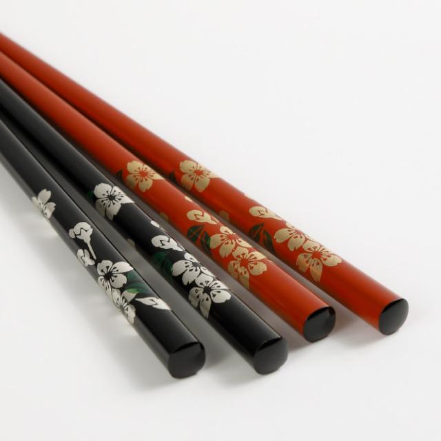 そこにモダンなデザインで金蒔絵を施して、普段使いから晴れの日使いにまで、美しさにこだわり続けた夫婦箸です。優美に表現された桜は日本の四季を感じ、洗練された印象を与えます。