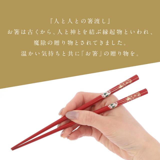 お箸は、古くから人と神を結ぶ「縁起物」とされ、魔除けの贈り物とされてきました。