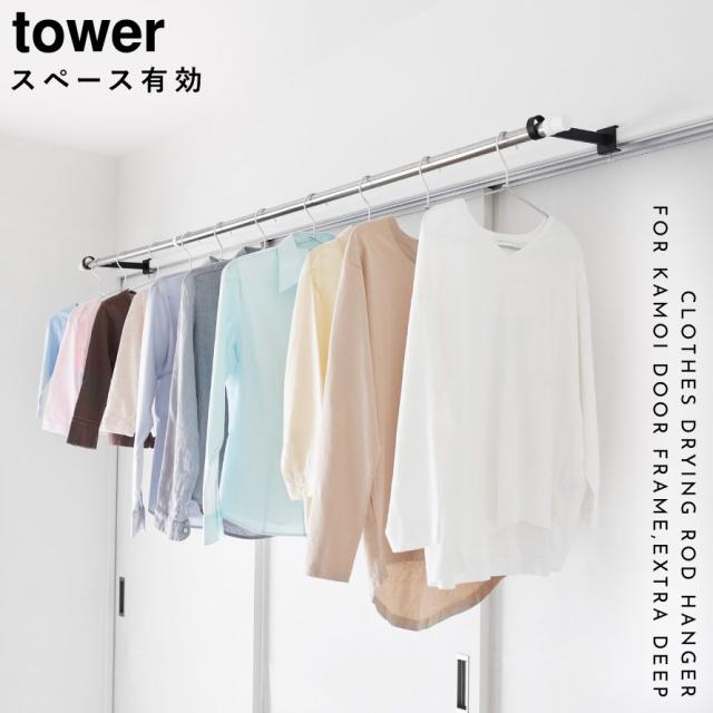 鴨居室内物干しポールホルダー タワー 奥行ワイド 山崎実業 tower 物干し ハンガー 室内 鴨居 窓枠 物干し竿受け 部屋干し おしゃれ モノトーン ホワイト ブラック 1586 1587