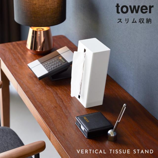 縦型ティッシュスタンド タワー 山崎実業 tower ティッシュケース 縦置き 縦 立つ ティッシュ ケース スタンド 縦型 おしゃれ モノトーン ホワイト ブラック 1440 1441