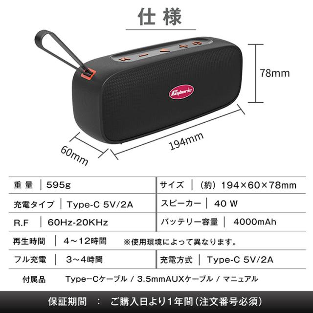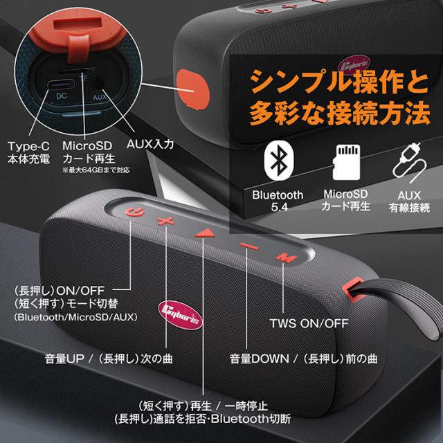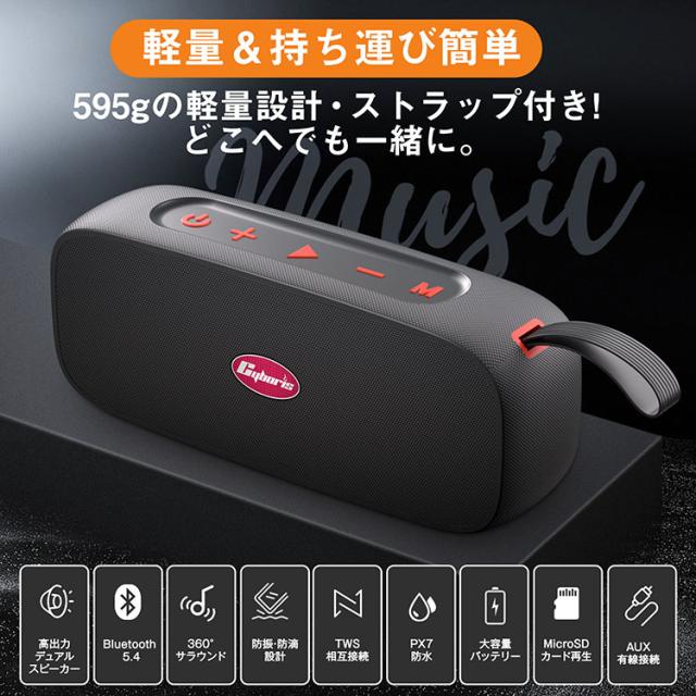 IPX7 完全防水 耐衝撃 Bluetooth 5.4 スピーカー 360°サウンド 40W大音量 高音質 重低音 軽量 ポータブル ワイヤレス ブルートゥース 2台ペアリング ステレオ 長時間再生 Micro SD カード AUX対応 車 屋外 室内 お風呂 海 仕事現場 アウトドア ハンズフリー対応 防水 防塵
