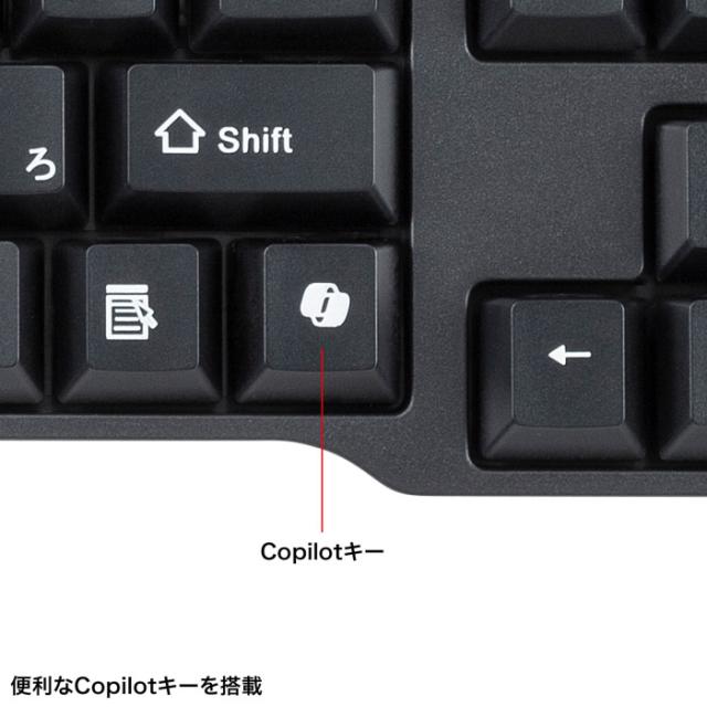 ●標準日本語配列のスタンダードキーボード。 ●しっかりとした深い押し心地のメンブレン方式。 ●Copilot機能をすぐに使用できるCopilotキーを搭載。※ ●余分なスペースを排除した、コンパクトデザイン。 ●矢印キーの位置を少しずらし押しやすいデザイン。 ●良く使うスペースキーを大型化。 ●パソコンやスマートフォンなど、BLUETOOTHを内蔵した機器とレシーバー無しで接続できます ●Windows、Android、macOS、iOS、iPadOS等様々な機器に対応します。 ●キーボード側でOSを識別し、配列を自動的に切替ます。(手動調整も可能です) ●最大3台の機器を同時に接続でき、ボタンを押すだけで機器の接続を瞬時に切替る事ができます。 ●NumlockやCapslockの状態がひと目で分かるLED付きです ●電池残量が少なくなると事前にLED表示してくれるので、電池が完全に切れる前に電池交換が可能です。 ●スタンダードな日本語109A配列のキーボードです ●ボリューム調整や明るさ調整など、便利なホットキーを搭載しています ●不使用時は誤作動や電池の消耗を防ぐオン/オフスイッチ付。 ※接続する機器がCopilotキーに対応している必要があります。