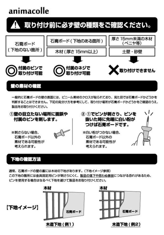小さなピンを複数差し込んで取付けるため賃貸でもお使いいただけます。