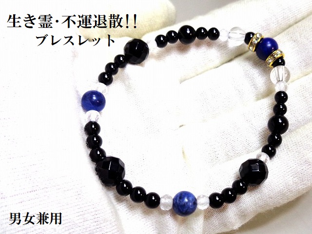 生霊除けブレスレット★生き霊★悪霊・死霊・雑霊・悪霊退散・邪気邪念・妬み・不運にも★男女兼用★予防にも( ゜Д゜)★ブレスレット★ラピスラズリ・ソーダライト・モリオン・水晶・ヘマタイト★パワーストーン★護符(霊符)