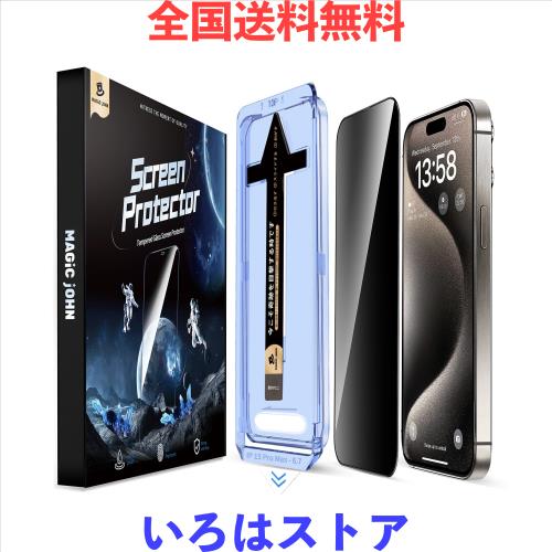 【覗き見防止】MAGIC JOHN iPhone 15 Pro Max ガラスフィルム 2枚セット ガイド枠付き 貼りやすい いphone15pro max ガラスフィルム 飛散