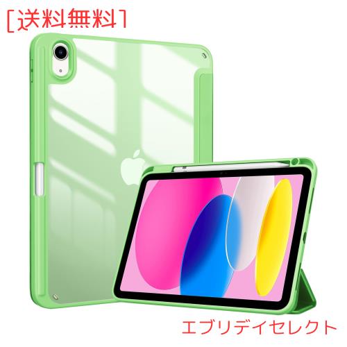 ProCase iPad 10世代 ケース 2022 10.9インチ A2696 A2757 A2777 ペン収納 耐衝撃 三つ折り スタンド スマートカバー(グリーン)