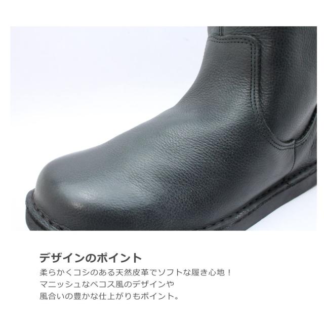 BEAUTYCREW ビューティークルー レディース ブーツ 7853 ラウンドトゥ フラット ペコス レザー 本革 抗菌 靴 黒 茶 ブラック ダークブラウン オーク