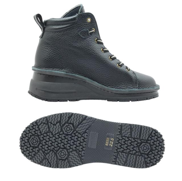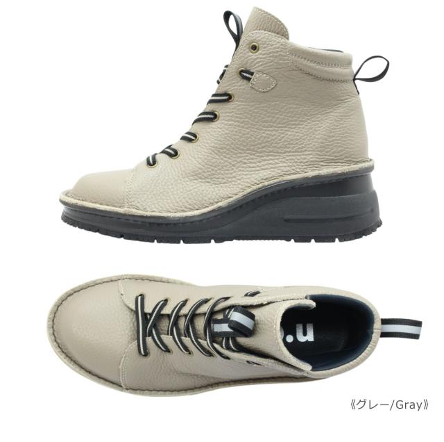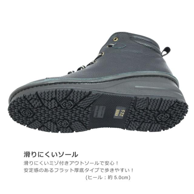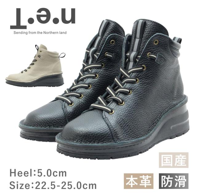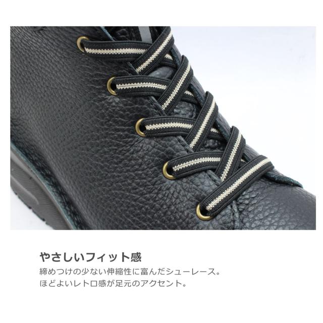 Ten テン レディース シューズ 0273 273 ブーツ ショート フラット レザー 本革 厚底 防滑 滑りにくい 日本製 国産 紐 幅広 4E 靴 黒 ブラック グレー