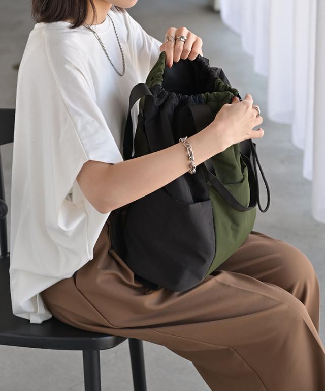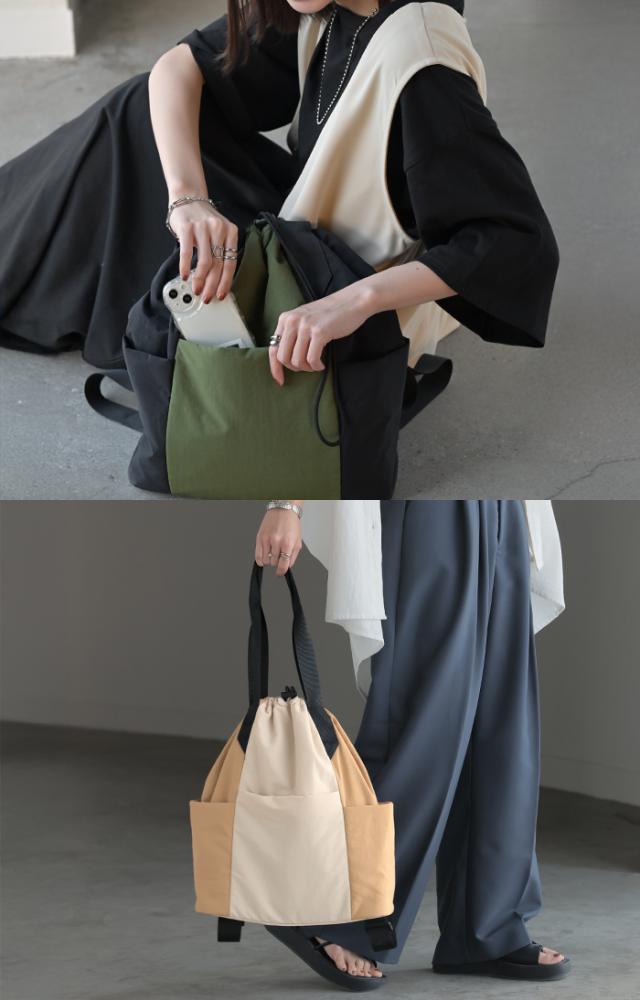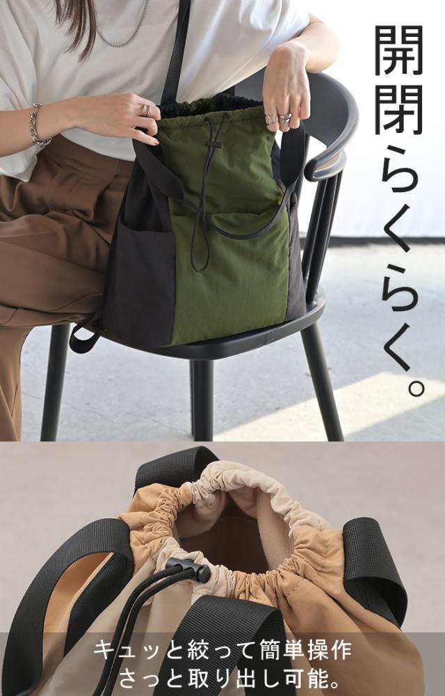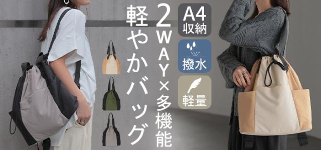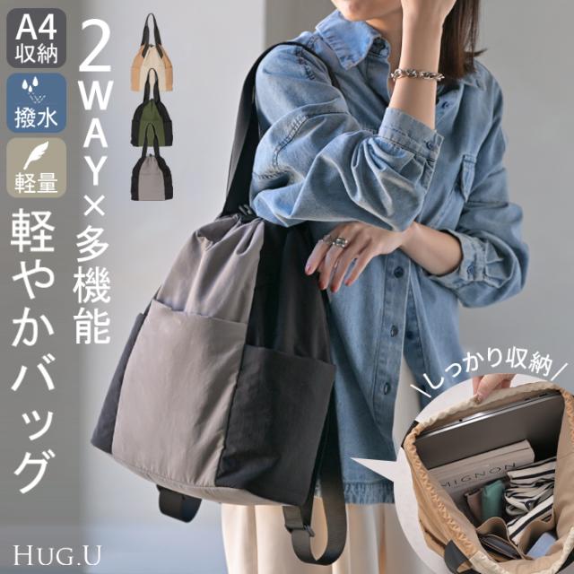 バッグ 2way リュック 撥水加工 トート 大容量 男女兼用 レディース メンズ カバン 肩掛け 鞄 インナーポケット ポケット コンパクト 通勤 多機能 巾着 おしゃれ モード カジュアル 軽量 旅行 女性 ユニセックス おしゃれ 黒 カーキ 春 冬 HUG.U 秋新作