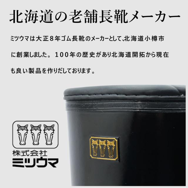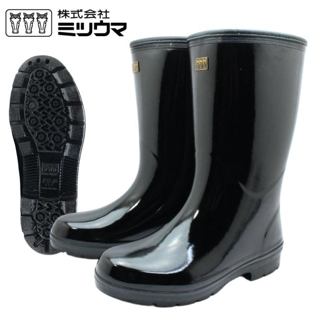 ミツウマ メンズ 長靴 エース軽半長2型プレス底MU レインブーツ 防寒 防水 防滑 雨 雪 作業靴 ミドル丈 黒