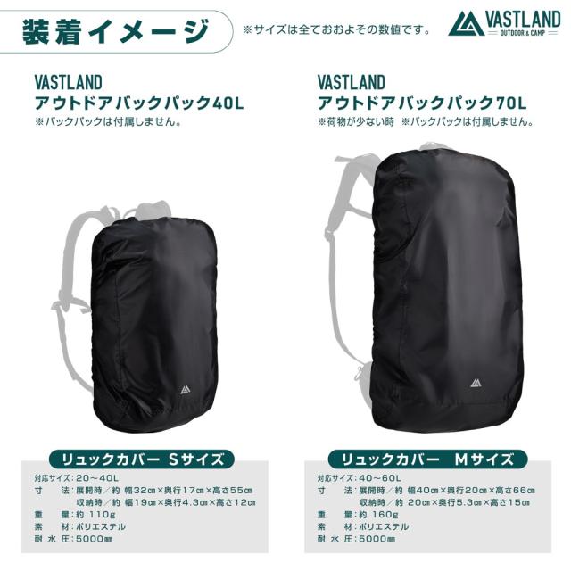 VASTLAND リュックカバー 40L〜60L リュック 防水カバー ザックカバー レインカバー 防水 カバー