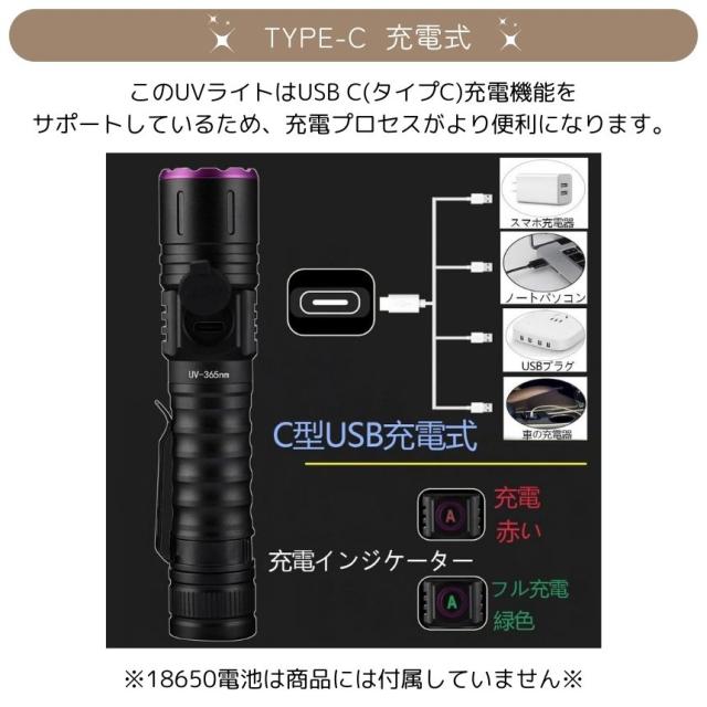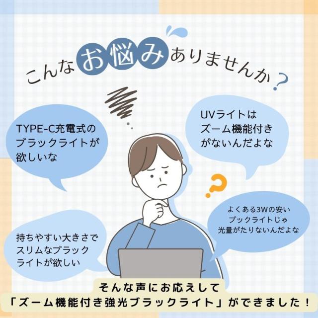 ブラックライト アニサキスライト アニサキス ライト UVライト 紫外線ライト 365nm LED 5W ズーム 機能 強光 小型 レジン ネイル TYPE-C 充電式 釣り 硬化 クリップ 検査 汚れ 匂い 発見 UV懐中電灯 検出 見えない汚れのチェック トイレ