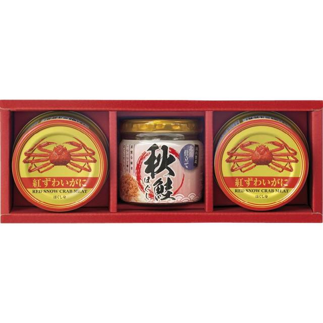 ◆セット内容:紅ずわいがに(ほぐし身)(55g)×2、秋鮭ほぐし(50g)×1