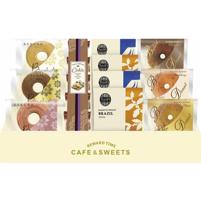 ◆セット内容:プレーンクッキー×5、タリーズドリップコーヒー(ブラジル・キリマンジャロ)×各2、ミニバウムクーヘン(バナナ・桜・ベルギーショコラ)・ベイクドドーナツ(プレーン・ストロベリー・ショコラ)×各1