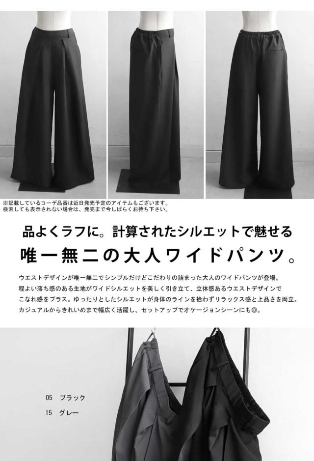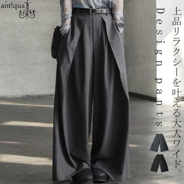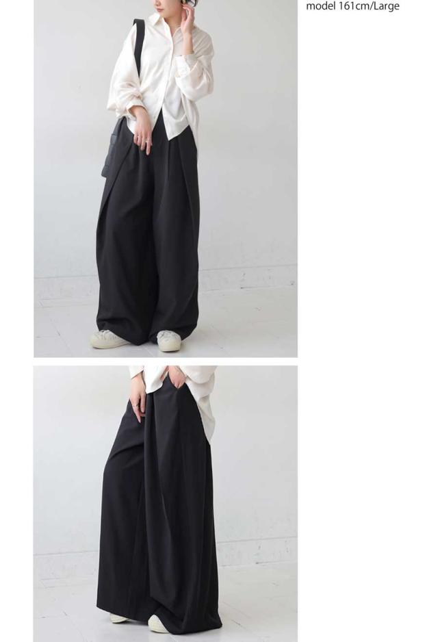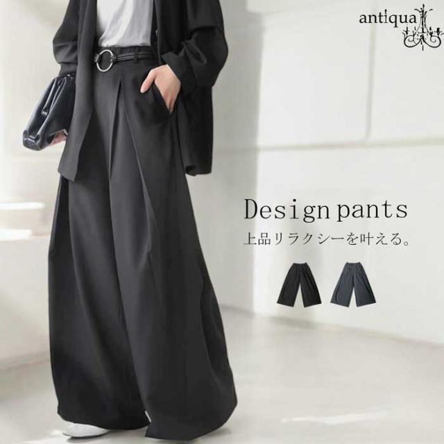 【検索ワード】タックワイドパンツ パンツ レディース ボトムス ロング 長ズボン 無地 ワイドパンツ ワイドシルエット タックパンツ タック 立体的 セットアップ ポケット付き ベルトループ 落ち感 美シルエット 脚長 美脚 フロントタック ラインを拾わない ウエストゴム 前フラット 後ろゴム ゆったり シンプル きれいめ 上品 モード スタイリッシュ エフォートレス 体型カバー 細見え 着痩せ 大きめ 大きいサイズ デザインパンツ ロングパンツ ブラック オケージョン オンオフ 着回し オフィスカジュアル 黒 グレー サイズ展開 Medium Large ユニセックス antiqua treecafe アンティカ ツリーカフェ 大人 おしゃれ 10代 20代 30代 40代 50代 60代 春 夏 秋 冬 オールシーズン お洒落 カジュアル かわいい かっこいい あんてぃか