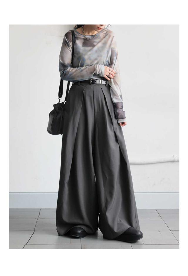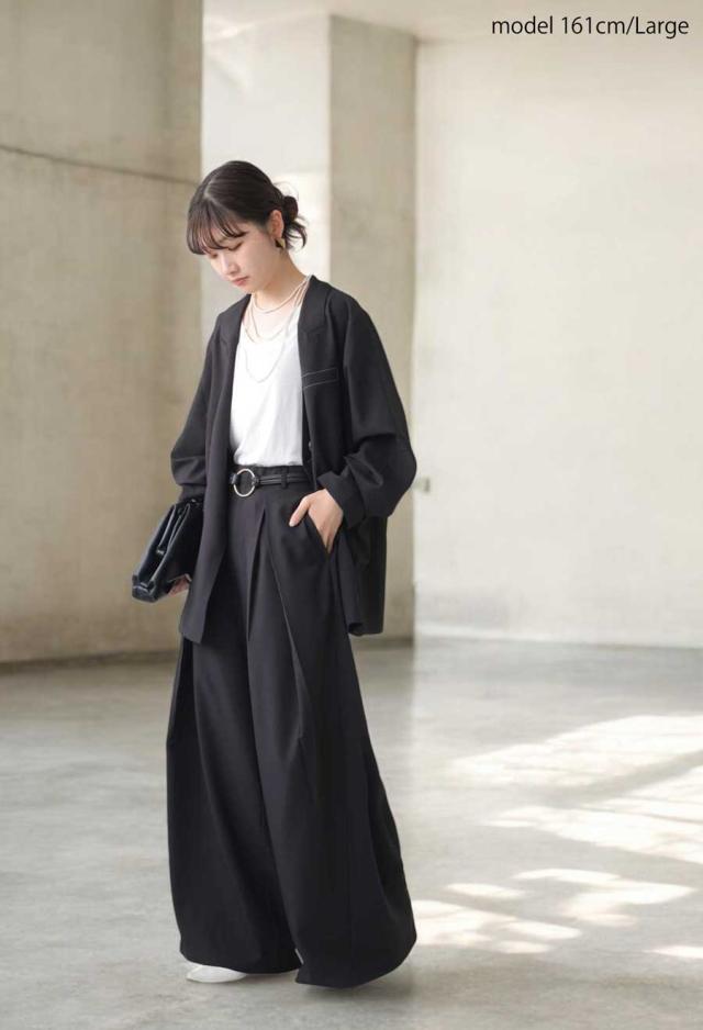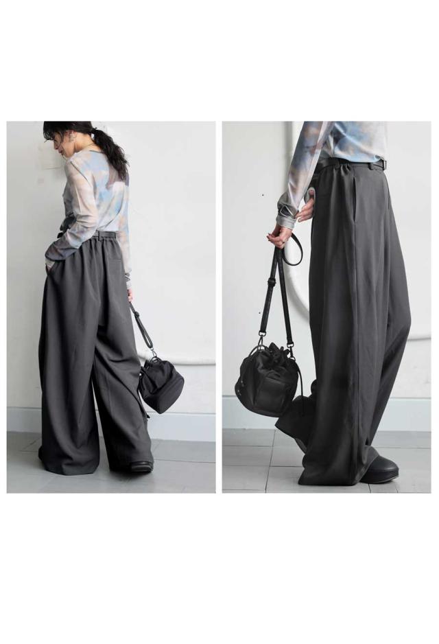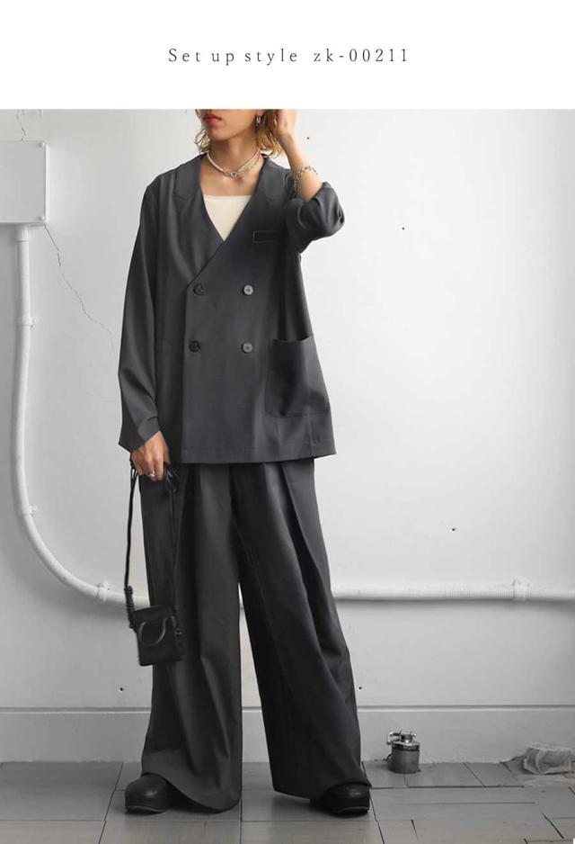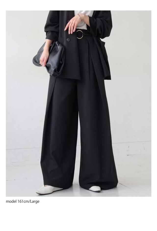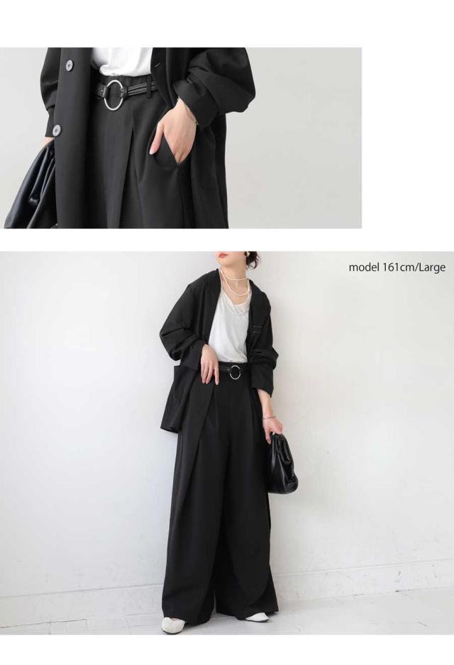 zk-00210 長ズボン 無地 ワイドパンツ ワイドシルエット タックパンツ タック 立体的 セットアップ ポケット付き ベルトループ 落ち感 美シルエット 脚長 美脚 フロントタック