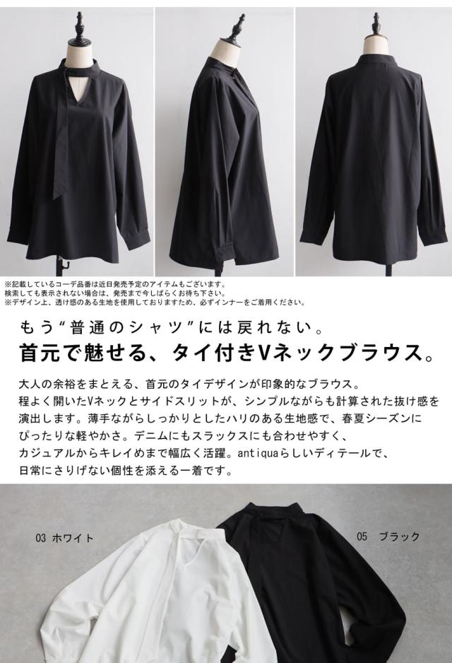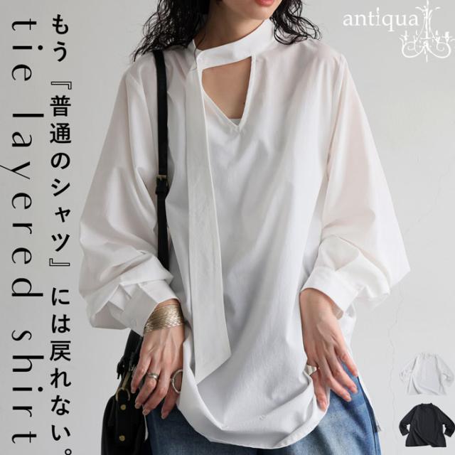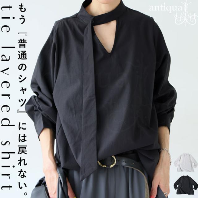 【検索ワード】タイレイヤードシャツ ブラウス レディース トップス 無地 長袖 シャツ プルオーバー 2way タイデザイン Vネック V字 薄手 綿 コットン 綿混 抜け感 通気性 きれいめ 上品 シンプル ボウタイ ゆったり 前後 2WAY サイドスリット 長め丈 綿 コットン ハリ 通勤 オフィス フォーマル パーティー オケージョン 入卒 ホワイト 白 ブラック 黒 antiqua アンティカ 大人 おしゃれ 10代 20代 30代 40代 50代 60代 春 秋 冬 お洒落 カジュアル かわいい かっこいい あんてぃか