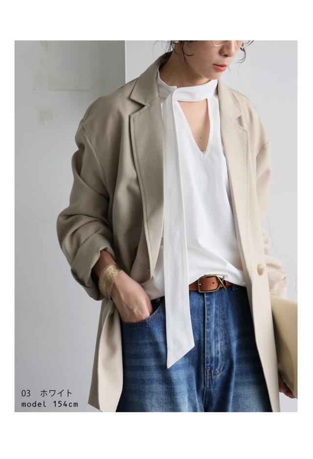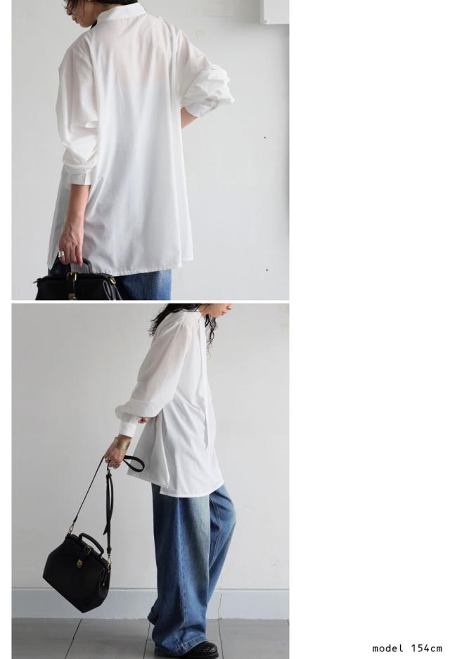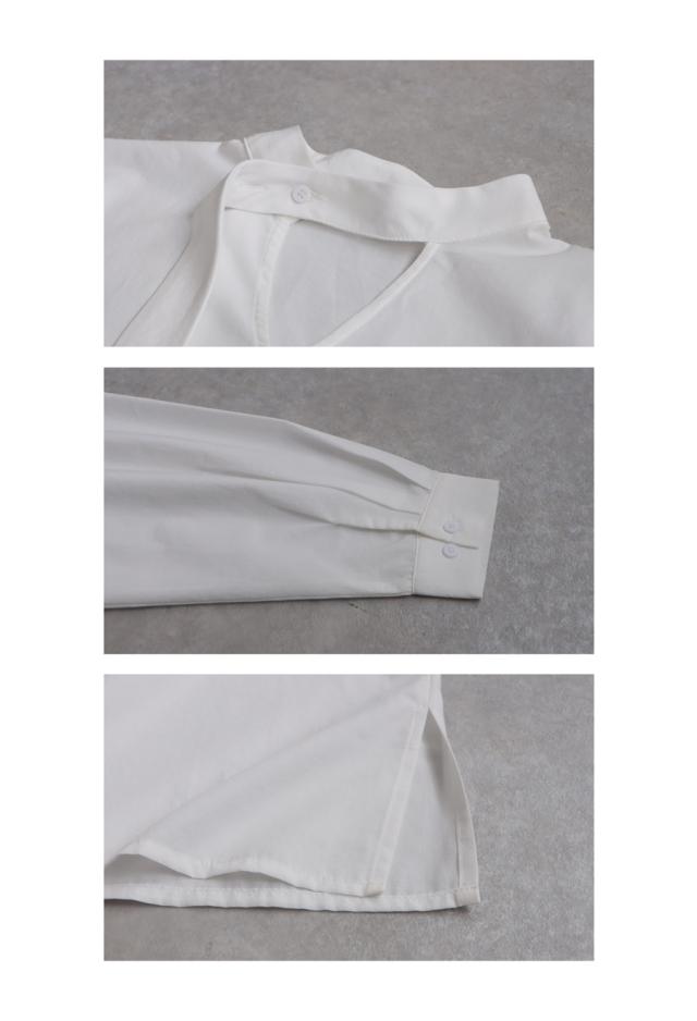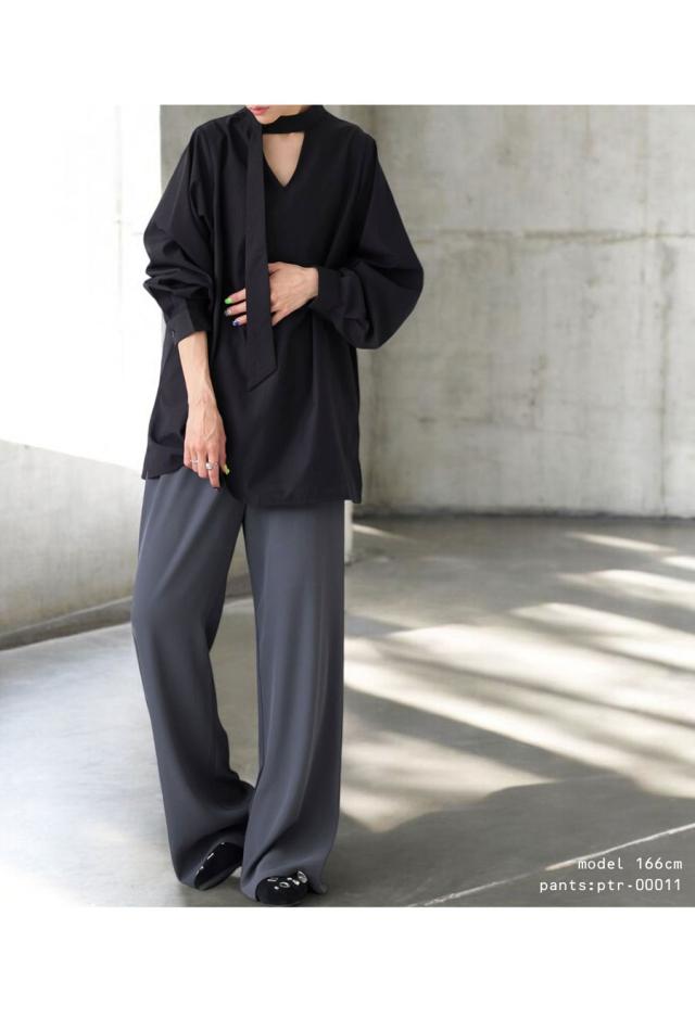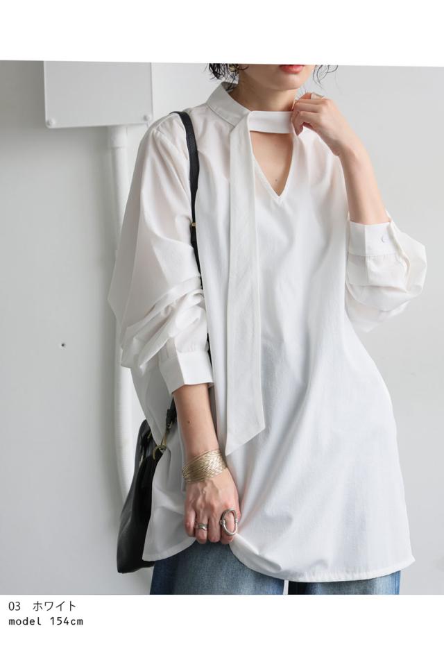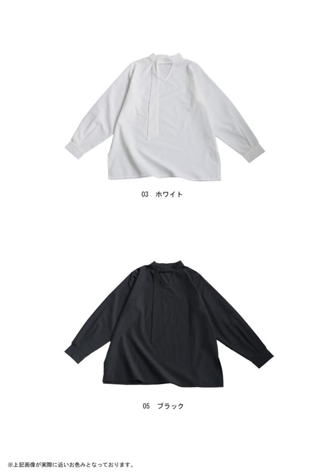 pk-01317 無地 長袖 シャツ プルオーバー 2way タイデザイン Vネック V字 薄手 綿 コットン 綿混 抜け感 きれいめ 上品 シンプル ボウタイ ゆったり 前後 2WAY 長め丈 綿