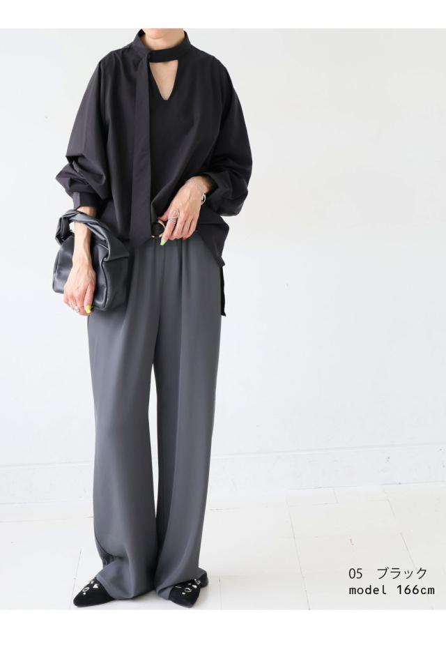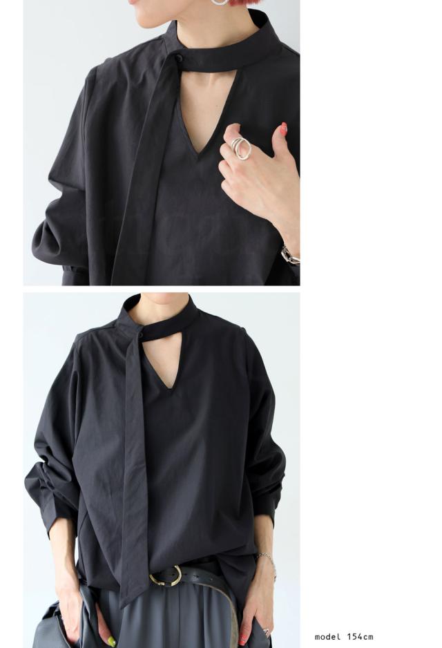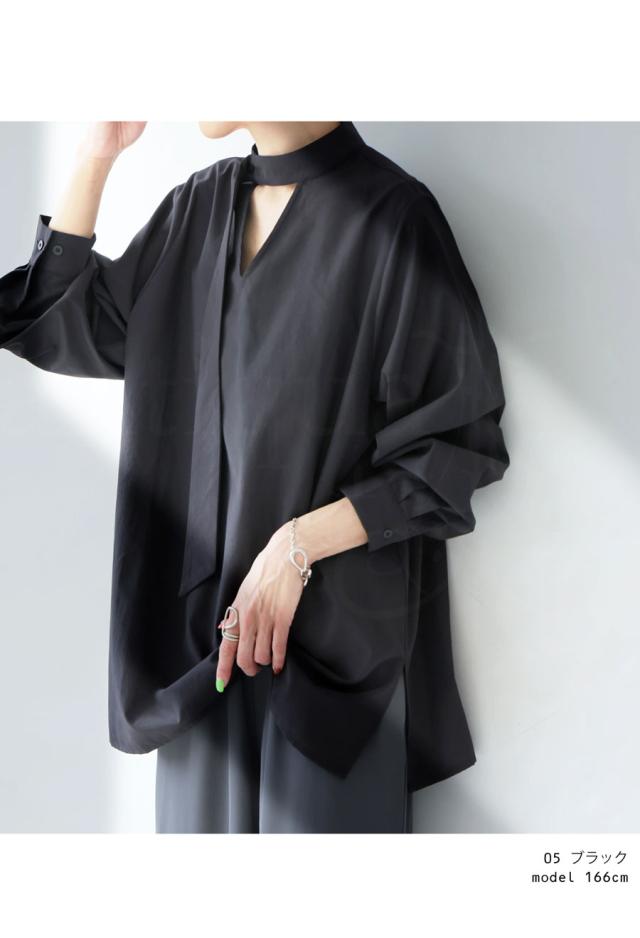 大人の余裕を纏う、タイデザインが印象的なブラウス。