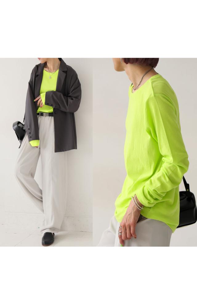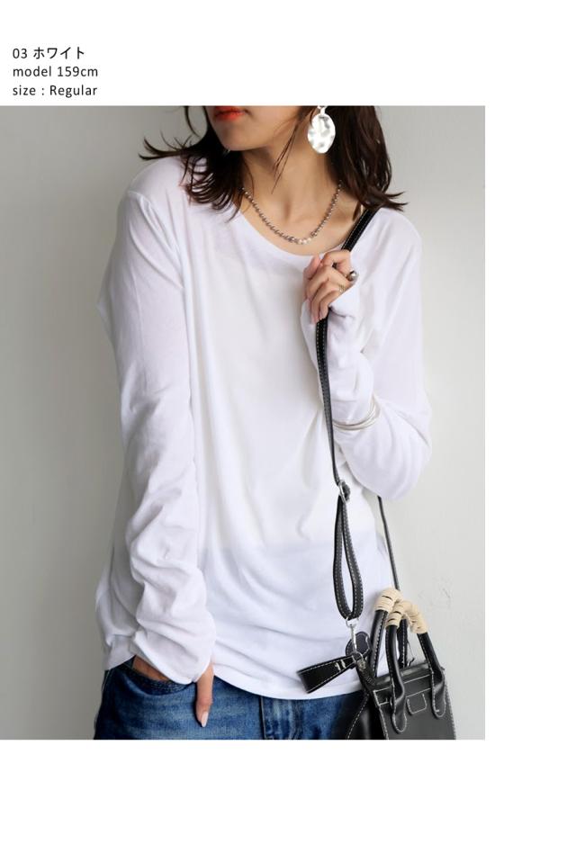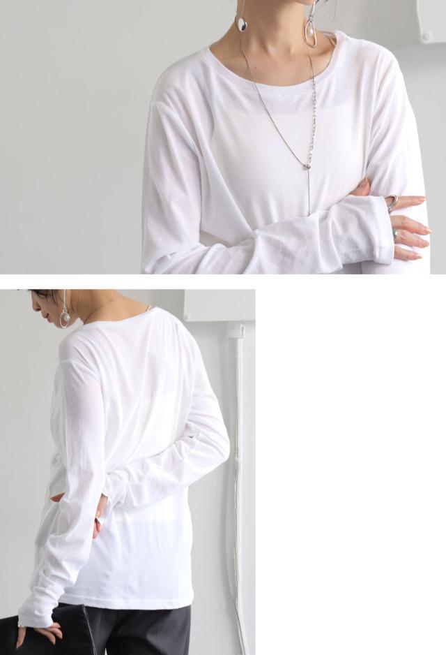 na-00486 シアー 丸首 ラウンドネック シンプル 着回し アレンジ インナー 重ね着 レイヤード 袖長め 伸縮性 軽量 フィット感 薄手 フィンガーホール スラブ風 デイリー使い 抜け感