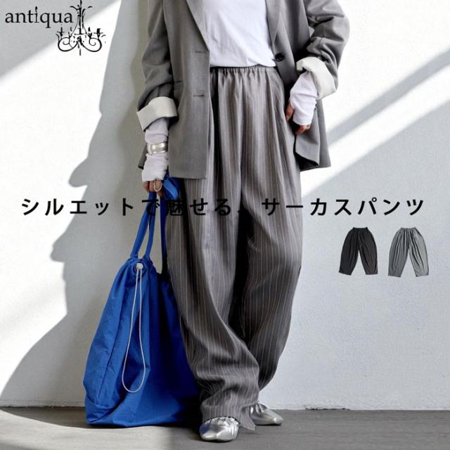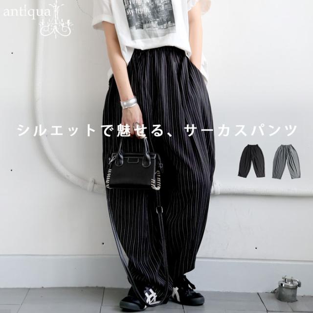 【検索ワード】ストライプバルーンパンツ パンツ レディース ボトムス ロング ストライプ柄 柄 柄パンツ ストライプ セットアップ ゆったり サーカスパンツ バルーンパンツ ドレープ シンプル タック タックパンツ ポケット付き イージーパンツ ウエストゴム 大きめ 大きいサイズ 総柄 着回し オンオフ デイリー オフィカジ 上品 上質 高級感 きれいめ ブラック 黒 グレー antiqua アンティカ 大人 おしゃれ 10代 20代 30代 40代 50代 60代 春 秋 冬 お洒落 カジュアル かわいい かっこいい あんてぃか