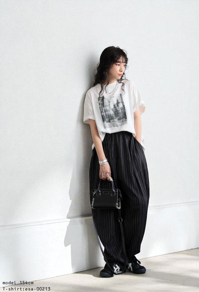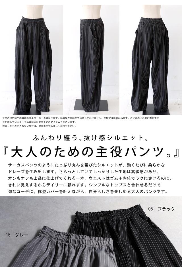 atr-00001 ロング ストライプ柄 柄 柄パンツ ストライプ セットアップ ゆったり サーカスパンツ ドレープ シンプル タック タックパンツ ポケット付き イージーパンツ ウエストゴム