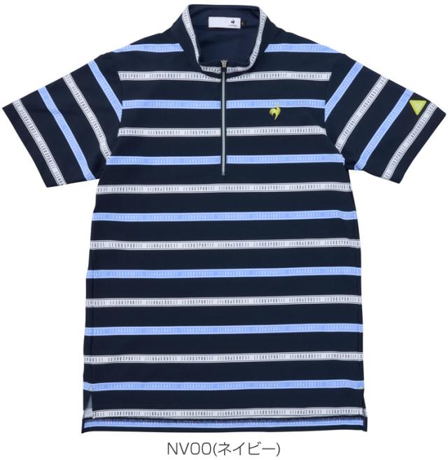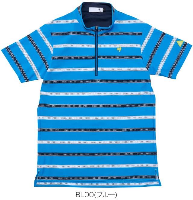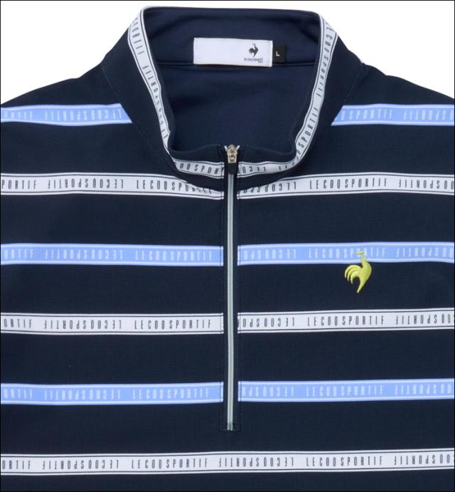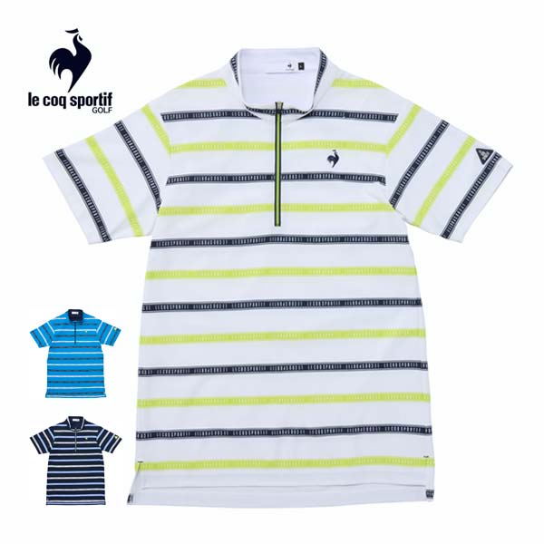 ルコック メンズ ゴルフウェア ボーダー柄 ハーフジップ 半袖シャツ LG5SHS80M |