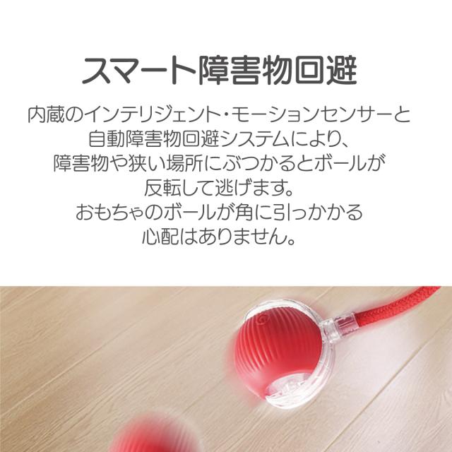 内蔵のインテリジェント・モーションセンサーと自動障害物回避システムにより、障害物や狭い場所にぶつかるとボールが反転して逃げます。おもちゃのボールが角に引っかかる心配はありません。